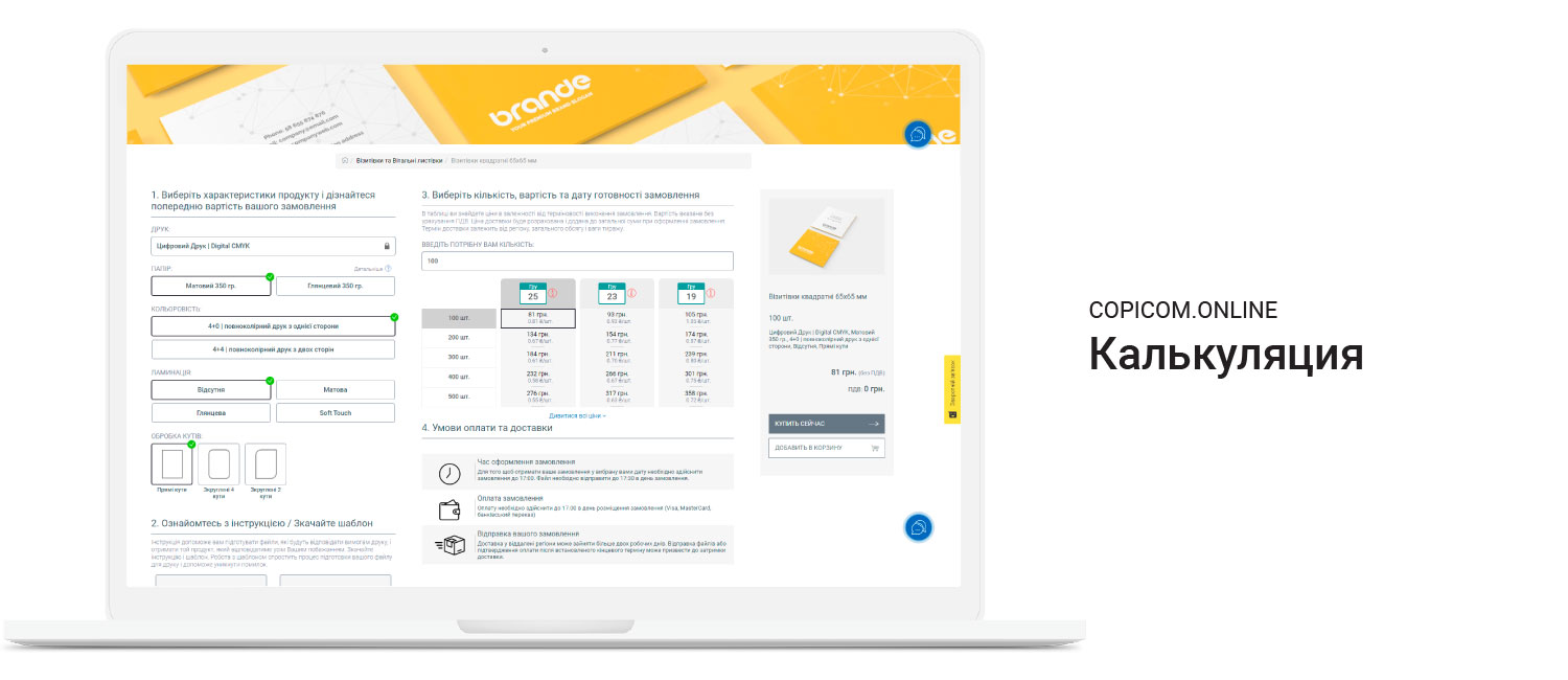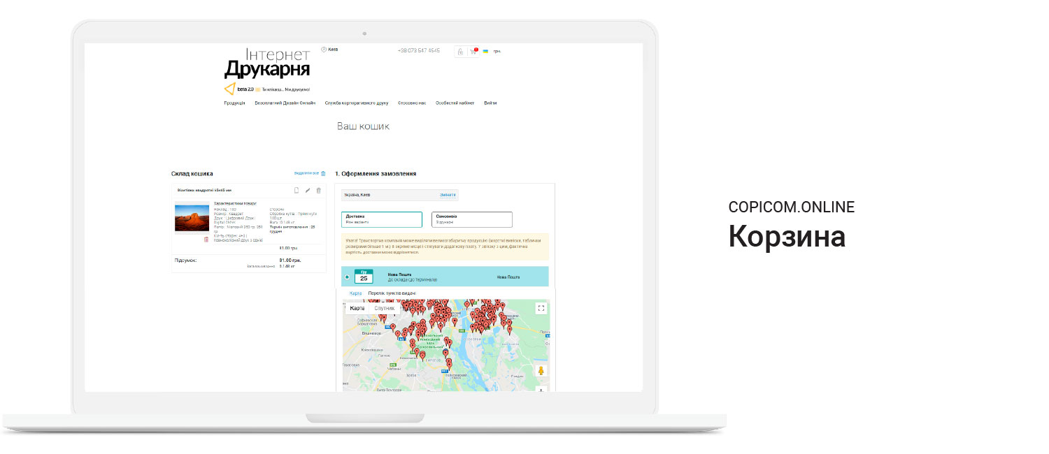 The shopping cart has several delivery services integrated in it, including those that provide a convenient map with pick-up spots marked on it. Furthermore, Copicom.online added a new option that allows a client to pick up the order from the printing company itself, in case a client wants to save on delivery.