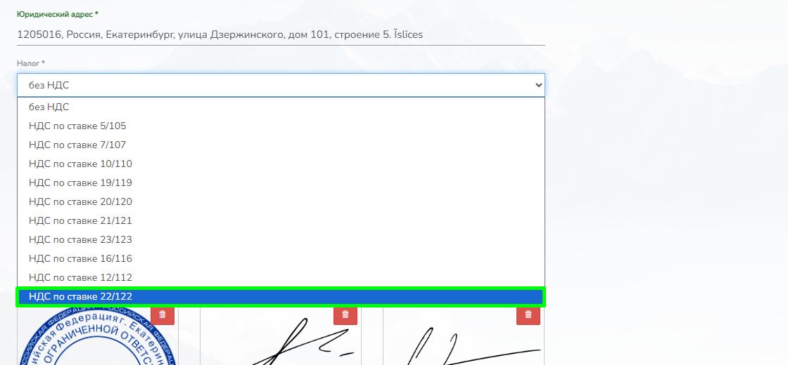 Актуальная ставка НДС 22% доступна для редактирования в настройках компании