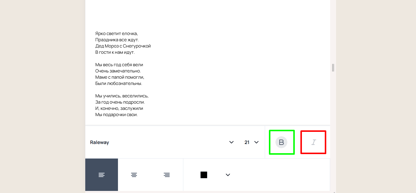 В мобильном редакторе фотопродукций мы исправили выбор курсива и жирного начертания для текста. Теперь, если шрифт не поддерживает эти стили, кнопки становятся неактивными. Это предотвращает случайное применение несуществующих начертаний и гарантирует хорошее качество печатного макета.