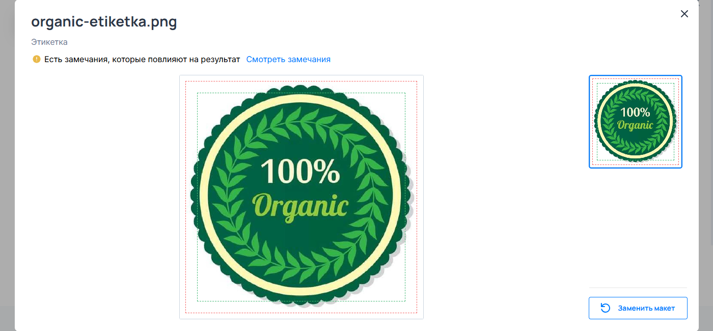 При экранном согласовании макета система всегда отображала линии реза и безопасной области, отталкиваясь от периметра прямоугольной зоны. При согласовании макетов этикеток сложных форм это вводило заказчиков в заблуждение, так как визуальные линии не совпадали с реальным контуром изделия.