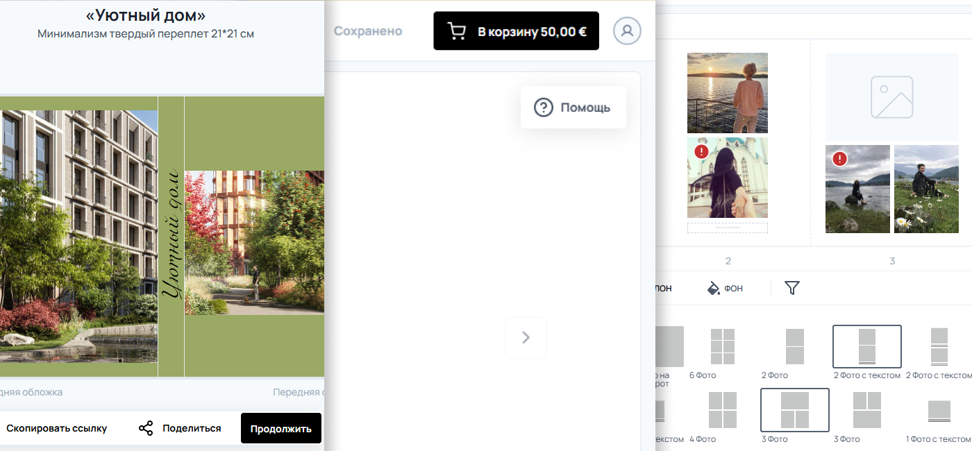 Напомним, что в редакторе доступны как шаблоны на разворот, так и отдельные шаблоны для каждой страницы — это расширяет возможности оформления фотокниг, позволяя гибко комбинировать элементы страниц.