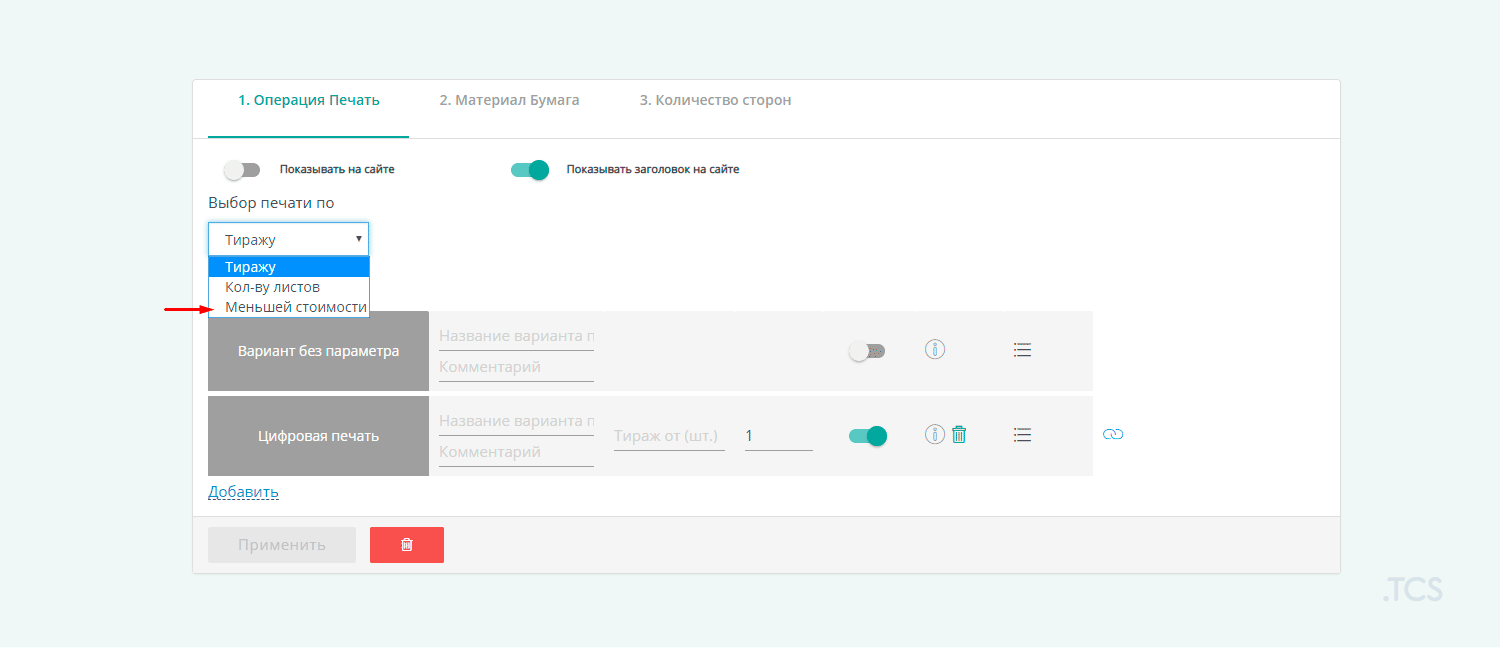 Умная калькуляция — это доработанный модуль "Операция печать". Теперь, когда формируете калькуляцию продукции в админке, вы можете указать параметр → "По меньшей стоимости".