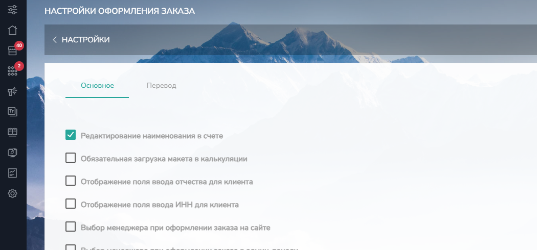 Ранее в корзину была добавлена возможность для клиентов редактировать наименование товара в счёте. Теперь в разделе «Настройки → Другие настройки → Настройки оформления заказа» появился чек-бокс «Редактирование наименования счета», позволяющий включить или отключить эту функцию в зависимости от потребностей вашего бизнеса.