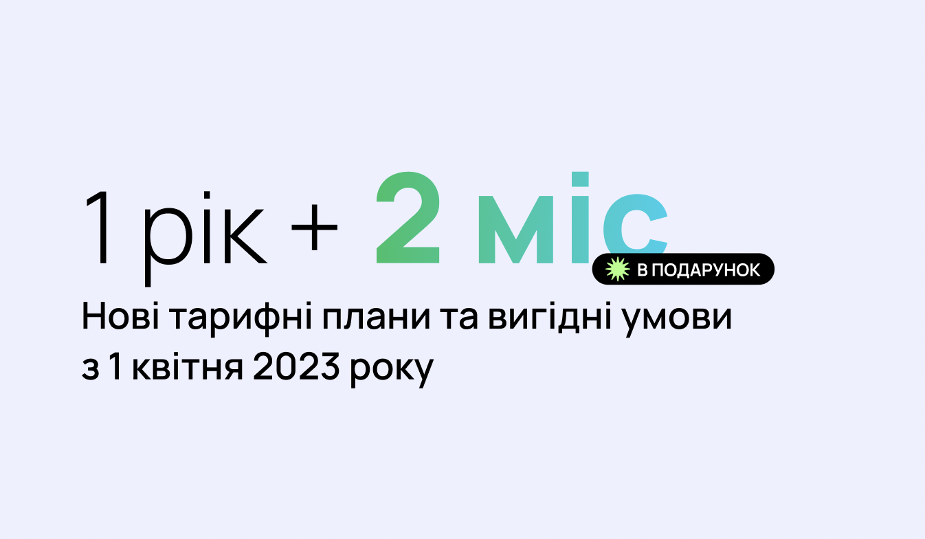 Для економії підписки ми вводимо нові умови. При оплаті за 1 повний рік ми надамо додатково 2 місяці як подарунок. 14 міс за ціною 12-ти!